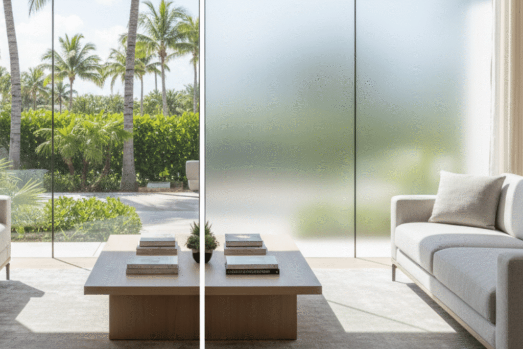 Energy efficiency is another major advantage of smart glass film. Florida homes spend a significant portion of the year cooling indoor spaces, and untreated glass is one of the biggest contributors to heat buildup.